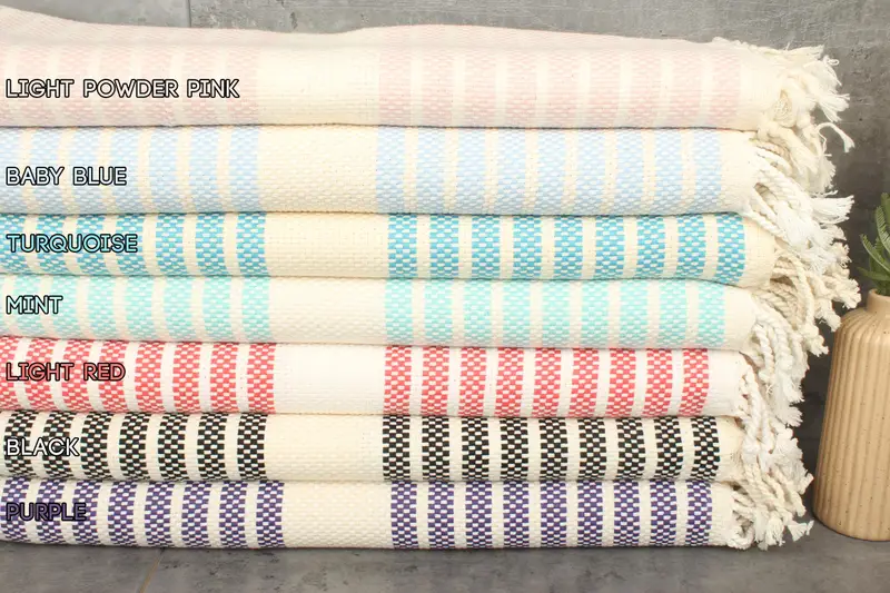 Organic cotton ensures superior sustainability and durability, resulting in a product characterized by high absorbency and softness. The towels measure 70x40 inches or 180x100 centimeters, with a weight of 450 grams, maintaining a hand-weaving tolerance of 1-2.5cm. Embroidery customization is available upon request, with pre-shrunk towels ready for immediate use. Orders are shipped from the US warehouse for domestic customers and from Turkey internationally, ensuring prompt delivery with options for expedited shipping. Returns and exchanges fol...