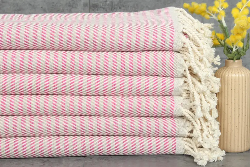 The Bachelorette Towel, a Turkish beach towel, is crafted from 100% organic Turkish cotton, ensuring natural dye colors and superior absorbency. Characterized by a weight of 340 grams and dimensions of 40x71 inches (100x180 centimeters), the towel accommodates a tolerance of 1-2.5 cm in hand-weaving. Each wash enhances the towel's absorbency, offering optimal utility over time.