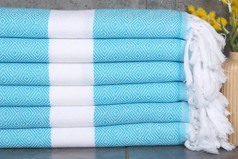 Turkish towels are characterized by their composition of 100% organic Turkish cotton, naturally dyed, ensuring superior absorbency. These towels, measuring 40x71 inches or 100x180 centimeters and weighing 360 grams, are hand-woven with tolerances of 1-2.5 cm, resulting in high-quality textiles. Customization options include embroidery and personalization, with pre-shrunk towels ready for immediate use. Towels are shipped within one day, with expedited options available, and include a satisfaction guarantee with easy return policies.