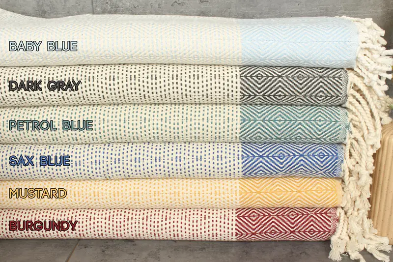 Ensuring high-quality fiber composition, these towels are crafted from 100% organic Turkish cotton, resulting in enhanced absorbency. Measuring 70x40 inches or 100x180 centimeters and weighing 380 grams, the towels exhibit tolerances of 1-2.5 cm in hand-weaving dimensions.