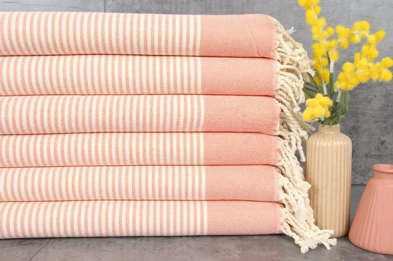 The Turkish Towels are made from 100% organic Turkish cotton, ensuring superior absorbency and natural dye colors. Resulting in a GSM weight of 220 grams per square meter, these towels exhibit optimal weight for diverse applications. Characterized by hand-weaving, variations in dimensions of up to 1-2.5 cm are expected.