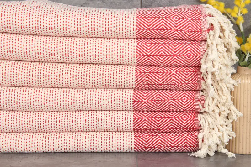 The towels and blankets are crafted from 100% organic Turkish cotton, ensuring a high-quality product. Characterized by superior absorbency, these towels become more absorbent after each wash, making them highly durable. Each towel measures 71x40 inches (180x100 cm) with a weight of 380 grams, hand-woven with tolerances of 1-2.5 cm.