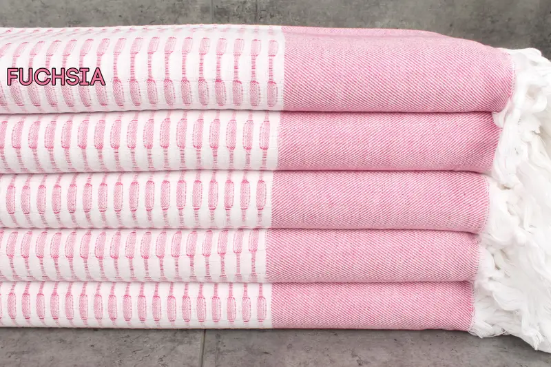 Turkish towels are renowned for their softness and style, characterized by their 100% organic cotton composition. These towels ensure high absorbency and durability, resulting in improved water absorption with each wash cycle. Organic cotton towels are hand-woven, with tolerances of 1-2.5cm, providing a natural and artisanal touch.