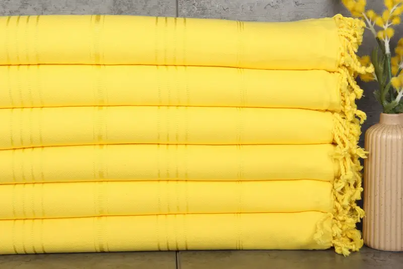 Characterized by organic cotton fibers, the towels are made from 100% organic Turkish cotton, ensuring superior softness and natural absorbency. Resulting in a weight of 280 grams, the towels are woven to standard dimensions of 40x71 inches or 100x180 centimeters. Tolerances in hand-weaving may result in minor dimensional variations up to 2.5 centimeters.