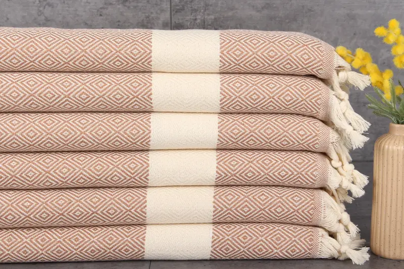 Characterized by 100% organic Turkish cotton, these towels offer superior absorbency, enhanced by natural dyeing processes. Resulting in a weight of 115 grams and dimensions of 20x36 inches or 50x90 centimeters, the towels exhibit a slight hand-weaving tolerance of 1-2.5 cm. Ensuring pre-shrunk status post-wash, the towels are ready for immediate use.