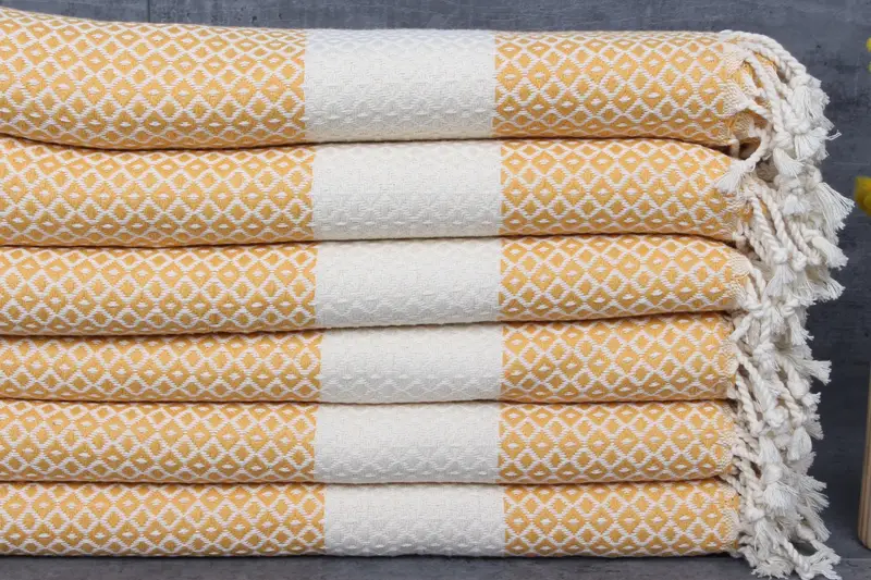 Ensuring premium quality, these towels are crafted from 100% organic Turkish cotton, resulting in a natural dyed finish. The fiber composition guarantees maximum absorbency, with cotton fibers becoming more absorbent with each wash. Characterized by dimensions of 40x71 inches or 100x180 centimeters, these towels weigh approximately 400 grams, with hand-weaving tolerances of 1-2.5 cm.