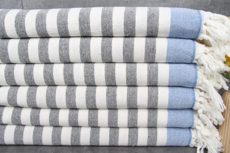 Ensuring quality, the Turkish Beach Towel is woven from 100% organic Turkish cotton, characterized by its natural dyeing process. Resulting in a towel that is both eco-friendly and durable, its fibers are capable of absorbing more water with each wash, enhancing its absorbency. The towel measures 40x67 inches or 100x170 centimeters, with a weight of 422 grams, and exhibits a hand-weaving tolerance of 1-2.5 centimeters.