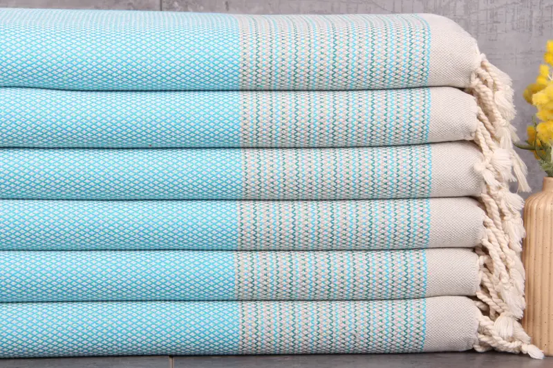 Turkish Towels are characterized by their %100 Organic Turkish Cotton composition, ensuring exceptional absorbency and softness. Resulting in a weight of 120 grams, these towels are sized at 20x36 inches or 50x90 centimeters, with potential hand-weaving tolerances of 1-2.5cm. Their pre-shrunk status guarantees that they will maintain their dimensions post-wash. Custom embroidery options are available, and orders over 35 USD qualify for free shipping. Customers can expect shipments within 2-6 days depending on the region, and damaged items durin...