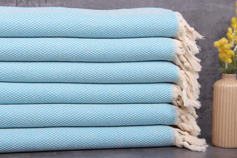 Crafted from 100% organic Turkish cotton, these towels are renowned for their absorbency, ensuring optimal water absorption with each wash. Characterized by dimensions of 18x40 inches or 45x100 centimeters, and a weight of 120 grams, they offer durability and quality that withstand hand-weaving variations of 1-2.5 cm.