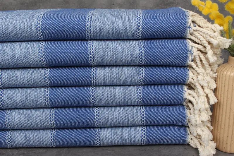 Characterized by the use of 100% organic Turkish cotton, these towels exhibit superior absorbency and softness. Each towel and blanket is hand-woven, resulting in dimensions of 36x65 inches or 90x165 centimeters, with a weight of 300 grams. Tolerances in hand-weaving result in minor variations of 1-2.5 cm.