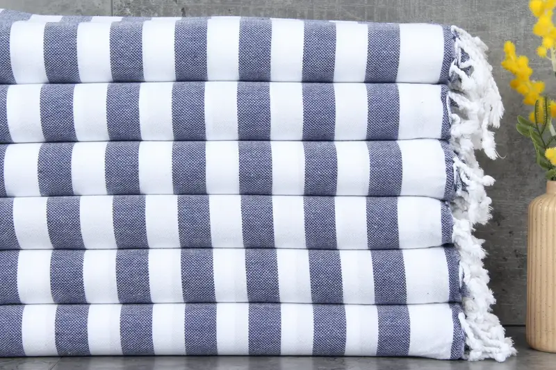 Characterized by 100% organic Turkish cotton, the towels ensure superior absorbency and durability, with each wash enhancing their water absorption capabilities. Measuring 40x67 inches or 100x170 centimeters and weighing 300 grams, these towels are hand-woven with a tolerance of 1-2.5 cm.