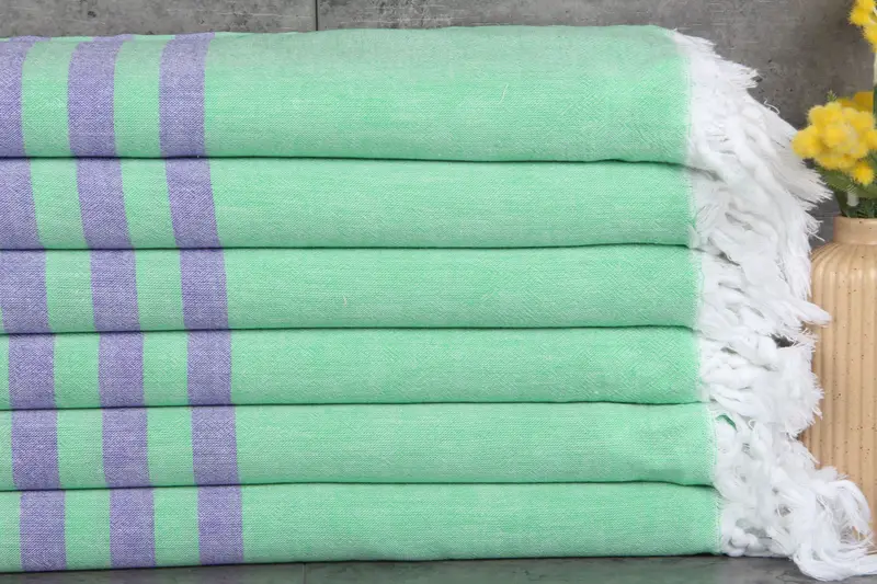 Characterized by natural dyeing, Turkish towels comprise 100% organic Turkish cotton, ensuring enhanced absorbency over successive washes. The towels exhibit a weight of 200 grams and dimensions of 36x71 inches (90x180 centimeters), with a hand-weaving tolerance of up to 2.5 centimeters. Ensuring customization, each piece can be personalized with embroidery, completed within two days upon request. Pre-shrunk towels are shipped within a day of order placement, with expedited delivery options available via DHL Express and FedEx. Free shipping is ...