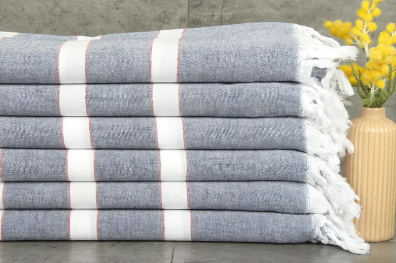 Engineered from 100% organic Turkish cotton, these beach towels are characterized by their natural dye process, ensuring vibrant and durable colors. Fabric dimensions are precisely 40x71 inches, equivalent to 100x180 centimeters, with a weight of 300 grams per piece. Hand-weaving results in a tolerance of 1-2.5 cm in measurements, providing a handcrafted touch to each towel.