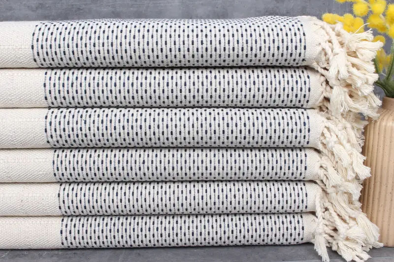 Turkish Towels are characterized by their composition of 100% organic Turkish cotton, ensuring high absorbency and softness. These towels measure 40x71 inches or 100x180 centimeters, with a weight of 480 grams, and are meticulously hand-woven with a tolerance of 1-2.5 centimeters. Embroidery customization is available for orders, with the pre-shrunk status of the towels enhancing their durability. Regarding logistics, orders are shipped from warehouses in Turkey and the USA, with delivery times varying by region. Additionally, returns and excha...