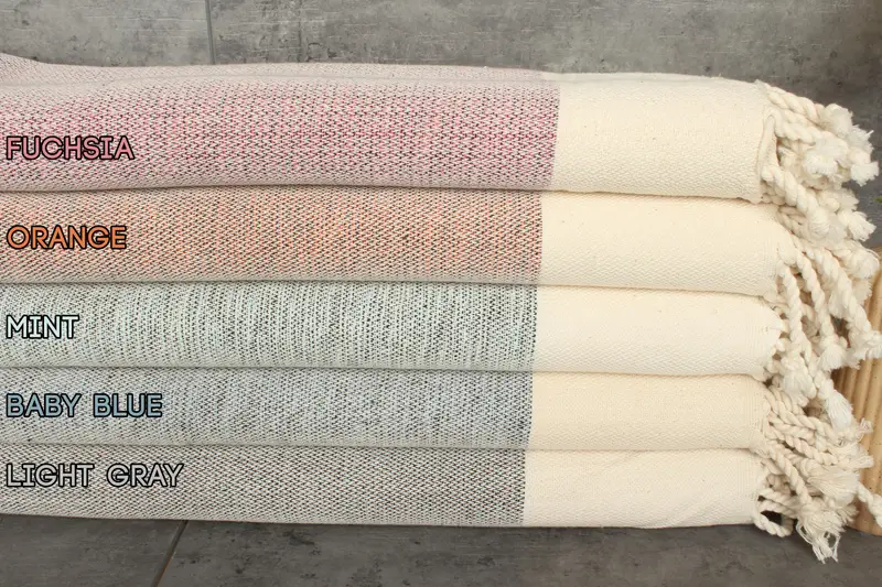 Turkish Towels are characterized by their high-quality organic cotton composition, ensuring durability and comfort. Weighing 400 grams, each towel measures 63x40 inches (160x100 centimeters), crafted to withstand hand-weaving tolerances of 1-2.5cm. These towels exhibit exceptional absorbency, with cotton fibers absorbing more water with each wash, enhancing their utility.