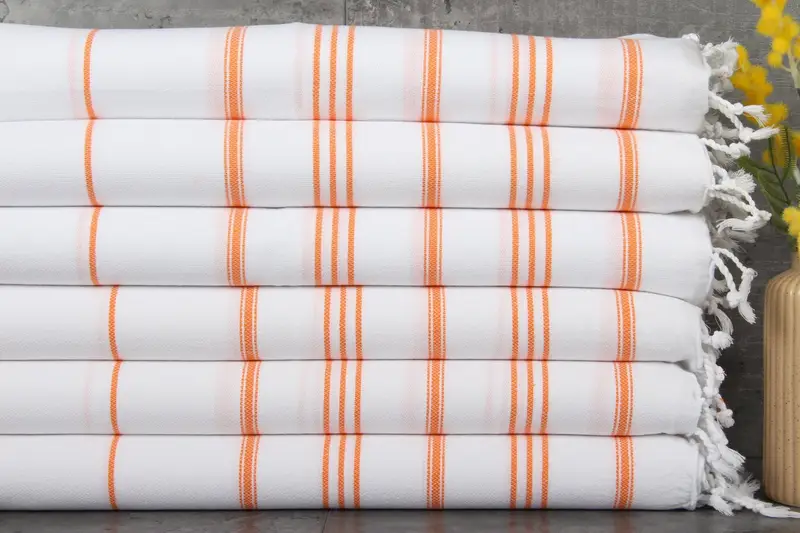 Characterized by its fiber composition, the Turkish towel is crafted from 100% organic Turkish cotton, ensuring superior absorbency and softness. Resulting in a weight of 100 grams, these towels measure 24x36 inches or 60x90 centimeters, with hand-weaving tolerances of 1-2.5cm. Emphasizing pre-shrunk status, these towels should be washed separately for the first 2-3 cycles to maintain their quality.