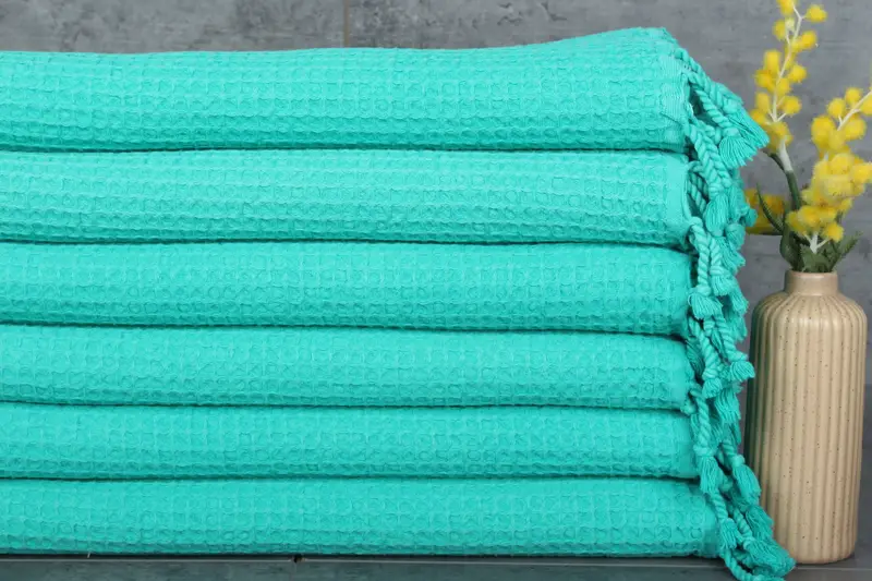The Turkish Towels are characterized by their organic cotton composition, ensuring superior absorbency and durability. Organic Turkish Cotton blankets and towels, sized 20x40 inches or 50x100 centimeters, weigh 148 grams, allowing for flexibility in hand-weaving tolerances up to 1-2.5 cm. Embroidery customization is available, with production lead times extending up to two additional days for personalized items. Towels are pre-shrunk and can be machine washed at 30-40°C with low cycles, enhancing their longevity when air-dried. For US customers...