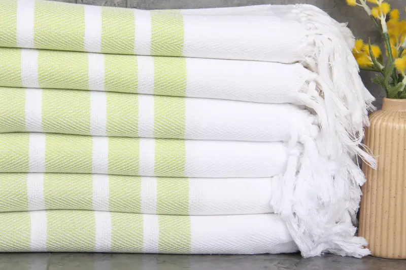 Characterized by superior absorbency, these towels are crafted from 100% organic Turkish cotton. Ensuring a luxurious feel, the fibers are naturally dyed, enhancing both the aesthetic and functional qualities. Each towel, measuring 40x71 inches or 100x180 centimeters, exhibits a weight of 380 grams, with hand-weaving tolerances of 1-2.5 centimeters.