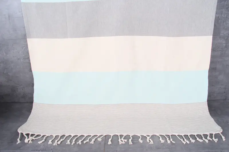 Composed of 100% organic Turkish cotton, the towels exhibit inherent durability and absorbency, ensuring longevity and enhanced moisture retention. Characterized by dimensions of 40x71 inches or 100x180 centimeters, these towels weigh approximately 350 grams, resulting in an optimal balance of lightweight convenience and substantial absorbency. The production process involves hand-weaving techniques, which allow for minor tolerances of 1-2.5 cm.