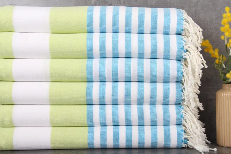 Organic cotton fibers ensure superior absorbency and softness, resulting in towels that become more absorbent after each wash. Characterized by dimensions of 40x71 inches (100x180 centimeters) and a weight of 300 grams, Turkish towels exhibit hand-weaving tolerances of 1-2.5 centimeters.