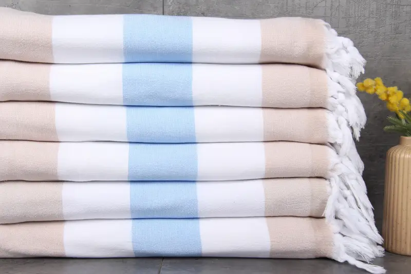 Our Turkish towels, blankets, and hand towels are characterized by their high-quality %100 Organic Turkish Cotton, ensuring superior absorbency and durability. These towels, weighing 425 grams, are meticulously woven in dimensions of 36x63 inches (90x160 centimeters), with a hand-weaving tolerance of 1-2.5 cm. Every piece is pre-shrunk, promising consistent sizing and comfort after washes.
