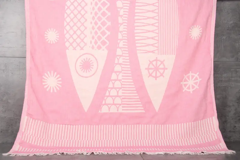 Turkish beach towels are characterized by their high-quality organic cotton composition, derived from 100% organic Turkish cotton. These towels are known for their superior absorbency and durability, with fibers absorbing more water with each wash, ensuring longevity. The towels measure 38x69 inches or 95x175 centimeters, weighing approximately 300 grams, with hand-weaving tolerances of 1-2.5cm.