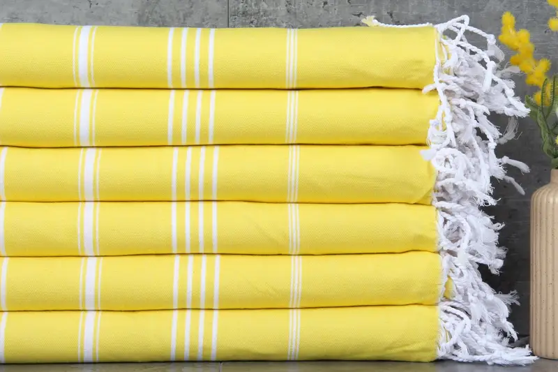 Turkish towels, hand towels, and blankets are crafted from 100% organic Turkish cotton. Characterized by natural dyeing processes, these textiles achieve enhanced absorbency with each wash cycle. Resulting in towels that measure 38x73 inches or 95x185 centimeters, with a weight of 280 grams, these items are notable for hand-weaving tolerances of 1-2.5cm.