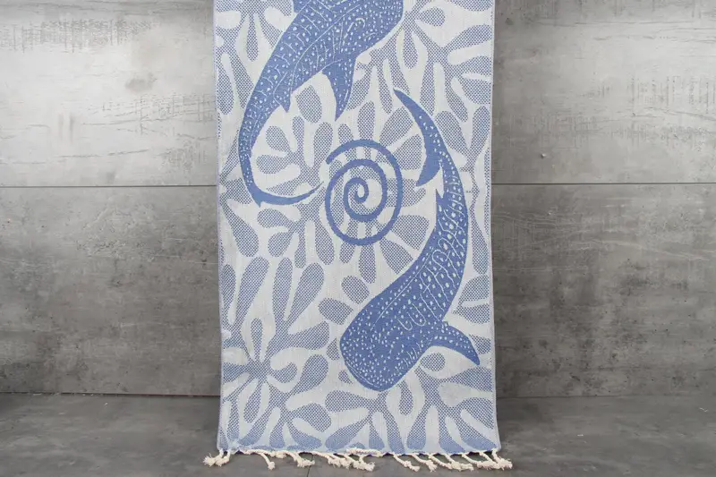 The towels are crafted from 100% organic Turkish cotton, ensuring a natural, neutral dye color palette. Resulting in a durable fiber composition, the towels exhibit high absorbency, improving with each wash cycle. Characterized by a weight of 90 grams and dimensions of 18x38 inches (45x95 centimeters), these towels allow for hand-weaving tolerances of 1-2.5 centimeters.