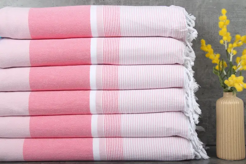 Ensuring high-quality, our towels are meticulously woven from 100% organic Turkish cotton, ensuring a plush texture and superior absorbency. Characterized by a weight of 304 grams, the towels measure 40x79 inches (100x200 centimeters) and have a hand-weaving tolerance of 1-2.5 cm. Resulting in a luxurious finish, these towels also increase in absorbency with each wash, delivering enhanced functionality over time.
