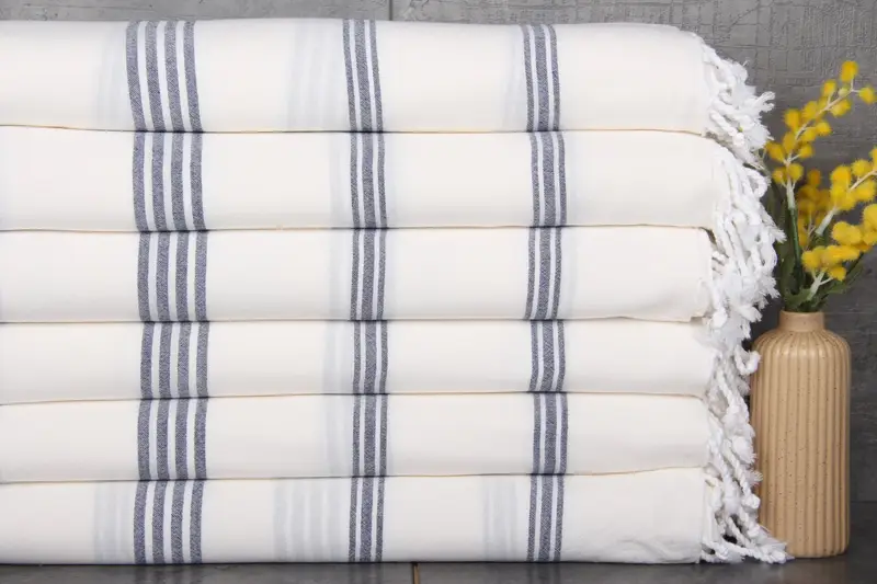 Ensuring high-quality, these towels are meticulously crafted from 100% organic Turkish cotton, resulting in natural dyeing processes. Characterized by their substantial absorbency, each piece is measured at 40x71 inches or 100x180 centimeters, with a weight of 240 grams. Hand-woven with precision, these towels exhibit slight variations of 1-2.5cm.