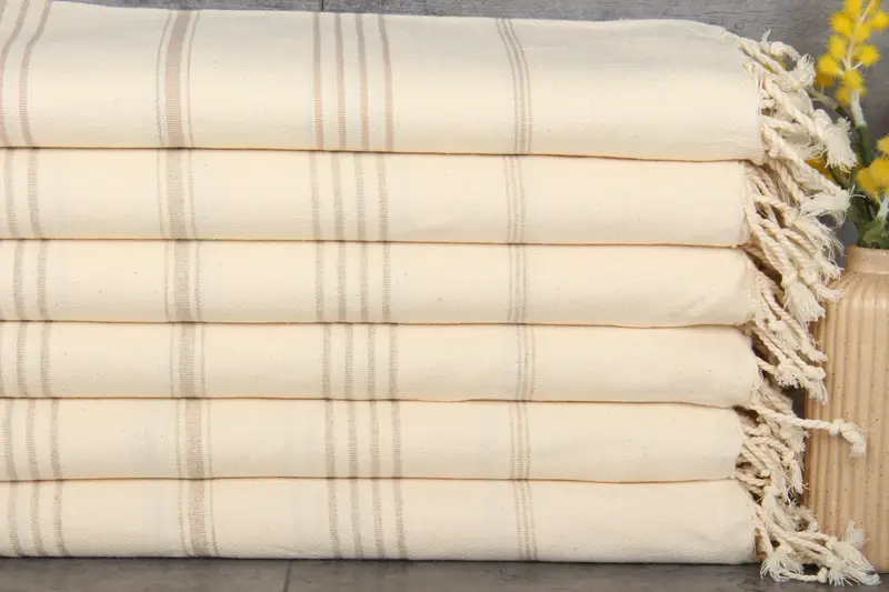 Organic cotton fibers characterize these towels, ensuring optimal absorbency and durability. Resulting in a weight of 280 grams, the organic cotton towels are sized at 40x71 inches or 100x180 centimeters. Artisanal hand-weaving yields tolerances of 1-2.5cm in dimensions.