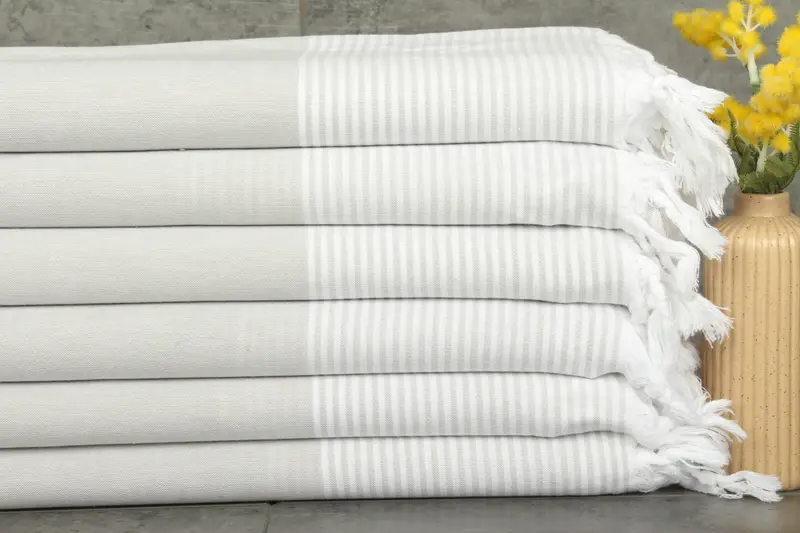 Turkish towels are characterized by their high-quality, 100% organic Turkish cotton, ensuring superior absorbency. Each towel is woven by hand, with a weight of 210 grams and dimensions of 40x71 inches or 100x180 centimeters, allowing a tolerance of 1-2.5 centimeters. Embroidery customization is available, and each piece is pre-shrunk. For orders under 35 USD, shipping costs are included, with delivery times varying by region. All international orders are shipped from Turkey, with delivery times of 2-6 days. Customers can request return or exch...