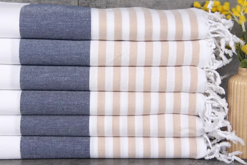 These Turkish towels are characterized by 100% organic Turkish cotton, ensuring natural dyes and high absorbency. Resulting in towels that measure 40x71 inches (100x180 centimeters) and weigh 280 grams, hand-woven with a tolerance of 1-2.5cm. Embroidery customization is available upon request, with additional shipping time required. Pre-shrunk towels are shipped in the same order day or the next, depending on personalization needs. US customers benefit from warehouse fulfillment, while international customers receive shipments from Turkey, offe...