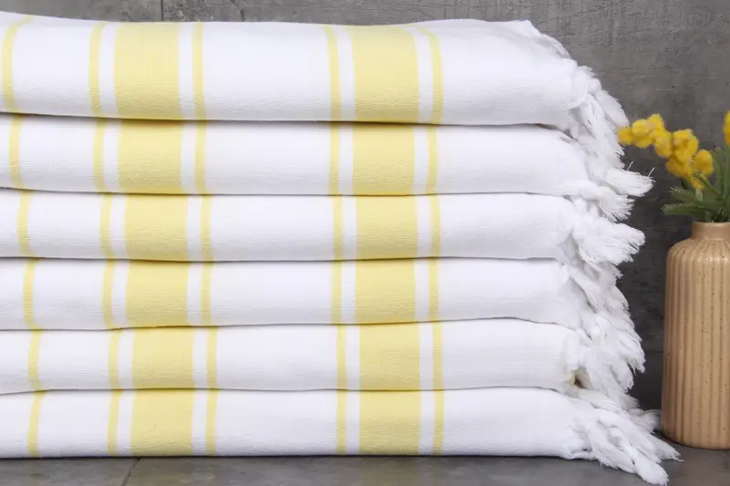 The Turkish Beach Towel, characterized by its hand-loomed construction, features 100% organic Turkish cotton. Resulting in enhanced absorbency with each wash, the towels are naturally dyed and weigh 450 grams. Measuring 36x67 inches or 90x170 centimeters, the fibers permit a tolerance of 1-2.5 cm.
