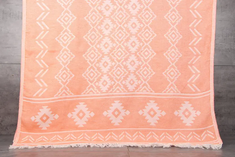 Turkish beach towels, bath towels, and hand towels are characterized by their use of 100% organic Turkish cotton, which ensures superior absorbency and durability. These towels, weighing 340 grams and measuring 40x73 inches (100x185 centimeters), are available in various colors naturally dyed, resulting in vivid and long-lasting hues. The towels are hand-woven with a tolerance of 1-2.5 cm, ensuring each piece maintains high-quality craftsmanship.