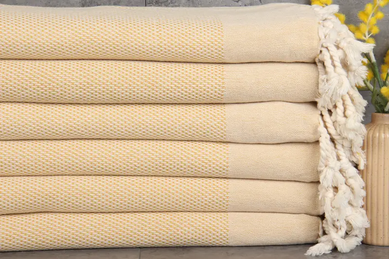 Characterized by a high fiber count, these Turkish towels are made from 100% organic Turkish cotton. Ensuring superior absorbency, the natural dyeing process adds to their durability and softness. Resulting in a towel weight of 390 grams, the towels are meticulously woven to maintain the dimensions of 40x71 inches (100x180 centimeters). Tolerances of 1-2.5 cm are expected due to hand-weaving.