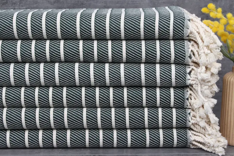 Dimensions are standardized at 40x71 inches or 100x180 centimeters, providing versatile usage across multiple settings. The towels come pre-shrunk, and their hand-weaving process allows for slight variations in measurements.