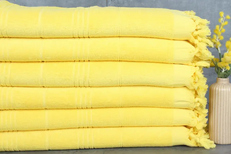 The Striped Terry Towel, sized 36x71 inches, is characterized by its natural fiber composition, employing organic cotton. Ensuring high absorbency, the towel exhibits excellent water retention after each wash, enhancing its utility over time. Weighing 420 grams and featuring dimensions of 70x36 inches, it accommodates a small tolerance of 1-2.5 cm in hand-weaving.