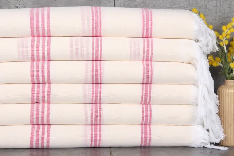 Constructed entirely from 100% organic Turkish cotton, the Turkish Bath Towel exhibits superior fiber composition and absorbency, ensuring a soft and resilient texture. Characterized by dimensions of 40x71 inches or 100x180 centimeters, it weighs 240 grams, providing substantial durability and comfort. Weaving tolerances are within 1-2.5 centimeters, maintaining consistent quality across production.