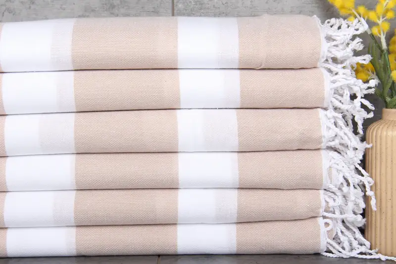 Turkish towels are characterized by their high absorbency, resulting from the use of 100% organic Turkish cotton. These towels, weighing 280 grams, measure 40x71 inches (100x180 centimeters), and exhibit hand-weaving tolerances of 1-2.5 cm. Ensuring pre-shrunk status post-wash, these towels can be custom-designed and personalized, meeting bulk order demands with ease.