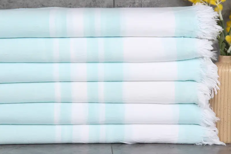 Turkish towels are made from 100% organic Turkish cotton, ensuring a natural fiber composition. These towels, weighing 180 grams, are characterized by dimensions of 36x67 inches (90x170 centimeters), featuring a tolerance of 1-2.5 cm in hand-weaving. The towels demonstrate high absorbency, becoming more absorbent with each wash.