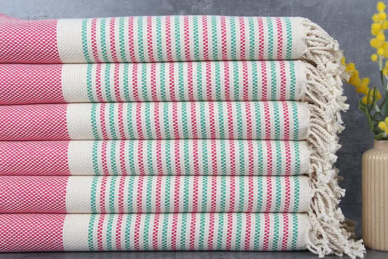 Our towels are composed of 100% organic Turkish cotton, ensuring a high-quality fiber composition that is both durable and absorbent. The natural dyeing process enhances the towels' versatility, resulting in a consistent texture and breathability over multiple washes. Characterized by an impeccable hand-weaving process, each product demonstrates a slight tolerance of 1-2.5 cm, contributing to the aesthetic appeal and comfort.