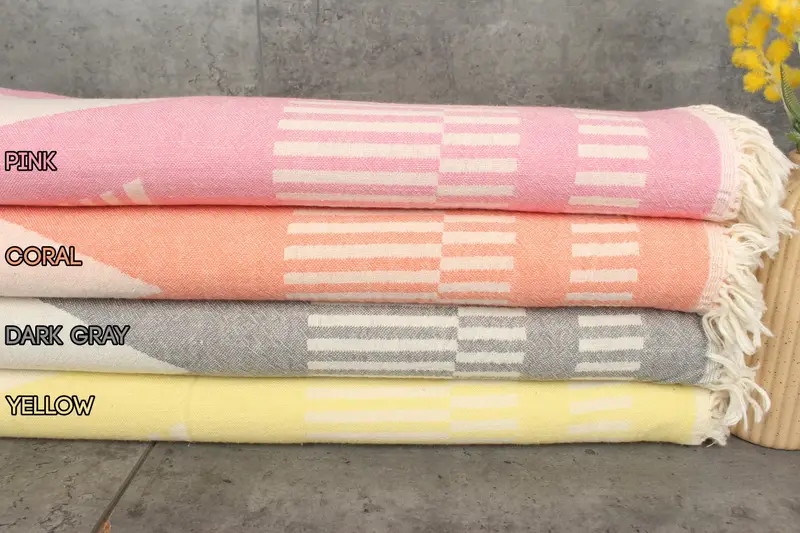 Turkish towels are crafted using 100% organic Turkish cotton, ensuring their natural dye coloring and high absorbency. Each piece weighs 300 grams and measures 69x38 inches (175x95 centimeters), with hand-weaving tolerances of 1-2.5 centimeters. These towels are pre-shrunk, enhancing durability and ensuring consistent sizing.