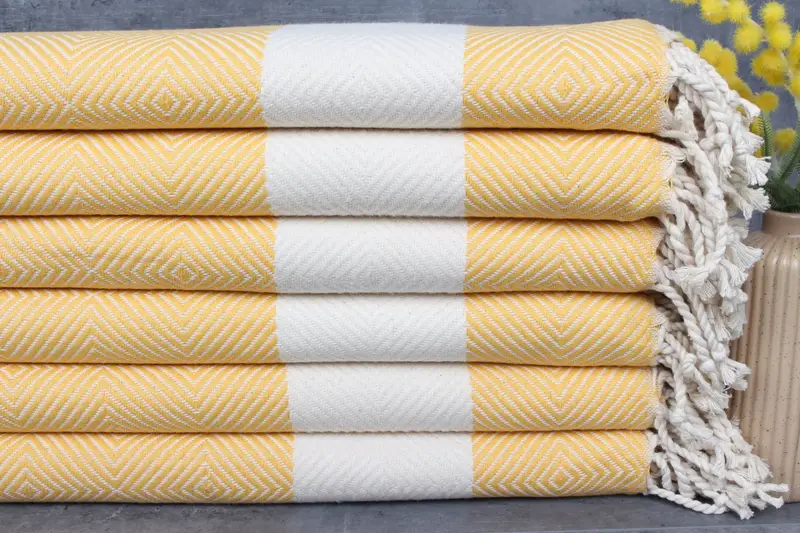 Turkish towels are characterized by their composition of 100% organic Turkish cotton, ensuring natural dyeing and high absorbency. Organic cotton towels or throws measure 40x79 inches (100x200 centimeters) and weigh 520 grams, with a hand-weaving tolerance of 1-2.5 cm. Hand-weaving contributes to customization, allowing for personalized embroidery. Turkish towels are pre-shrunk, which results in their optimal form being retained post-wash. Embroidery customization and expedited shipping options are available. US customers benefit from local ful...