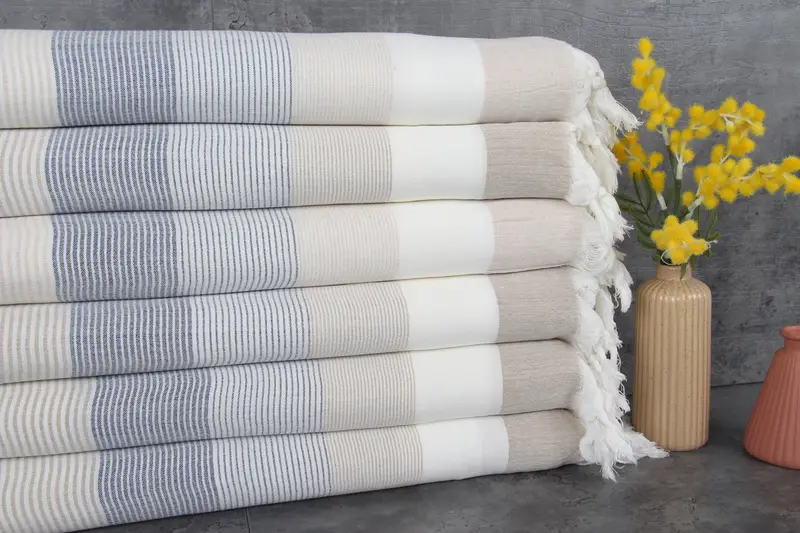 Turkish towels are characterized by their composition of 100% organic Turkish cotton, naturally dyed to retain vibrant colors. Ensuring high absorbency, each towel, blanket, or hand towel weighs 250 grams per square meter, with dimensions of 40x63 inches or 100x160 centimeters, allowing for a 1-2.5 cm tolerance due to hand-weaving. Delivery timelines vary, with expedited options available for an additional fee. The towels are pre-shrunk, but it is recommended to wash them separately for the first 2-3 washes. For custom embroidery and faster shi...