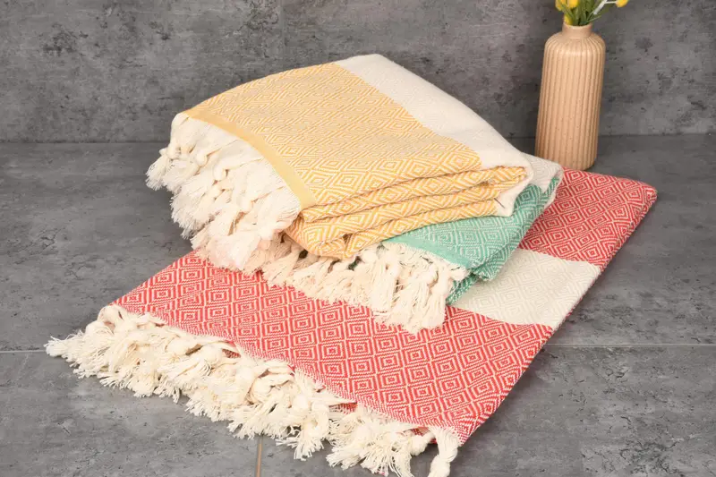 Turkish towels are characterized by their use of 100% organic Turkish cotton, resulting in high absorbency and durability. Ensuring fiber composition integrity, these towels are naturally dyed, maintaining their softness and style. Turkish beach towels weigh 400 grams, while hand towels are lighter at 120 grams, and their dimensions are 40x70 inches (100x180 centimeters) and 20x36 inches (50x90 centimeters) respectively. Variability in hand-weaving results in a tolerance of 1-2.5 centimeters.