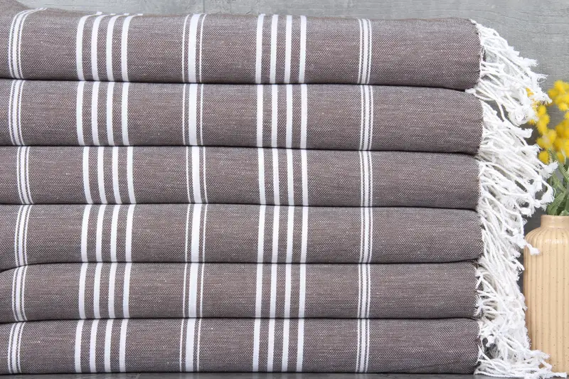 Materials are characterized by 100% organic Turkish cotton, ensuring natural dyeing and superior absorbency. Towels are sub-categorized as beach towels, measuring 40x75 inches or 100x190 centimeters, with a weight of 270 grams. Hand-weaving tolerances average 1-2.5 cm. Embroidery customization is available, with an additional two days required for personalized items. Pre-shrunk status is maintained, and towels are shipped within one day, with expedited options noted. Returns and exchanges are detailed on the homepage, with shipping policies var...