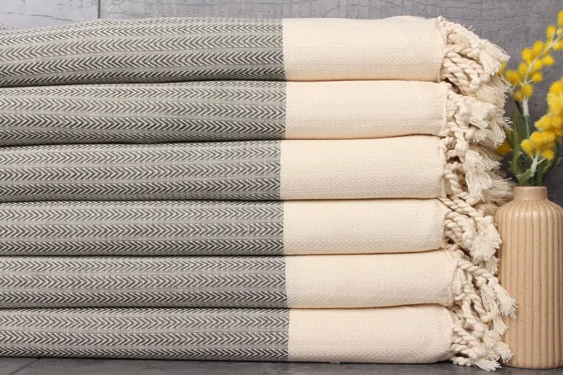 The fiber composition consists entirely of %100 organic Turkish cotton, ensuring superior absorbency and durability. Characterized by a weight of 420 grams, these towels measure 36x67 inches or 90x170 centimeters, with a hand-weaving tolerance of 1-2.5cm. Weaving tolerances may result in slight variations.