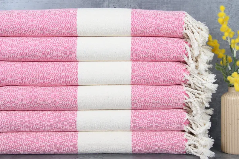 Featuring an absorbent fiber composition, the Turkish Towels and Blankets are crafted from 100% organic Turkish cotton, naturally dyed. Ensuring high absorbency, these towels and blankets weigh 340 grams with dimensions of 36x67 inches (90x170 centimeters). Hand-woven with a tolerance of 1-2.5 centimeters, these products deliver consistent quality.