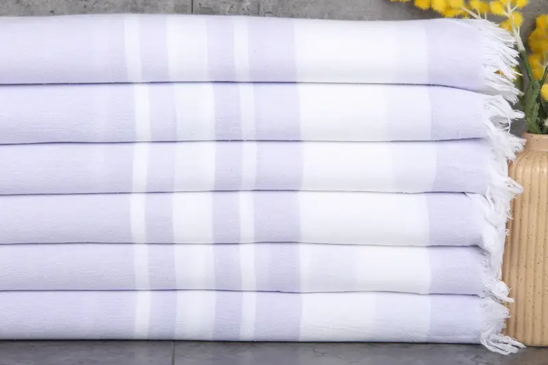 Turkish towels and blankets are crafted from 100% organic Turkish cotton, which ensures their exceptional absorbency and durability. These towels, weighing 180 grams and measuring 36x67 inches (90x170 cm), are characterized by their softness and natural dyed colors. The hand-weaving process allows for minor variations of 1-2.5 cm in dimensions.